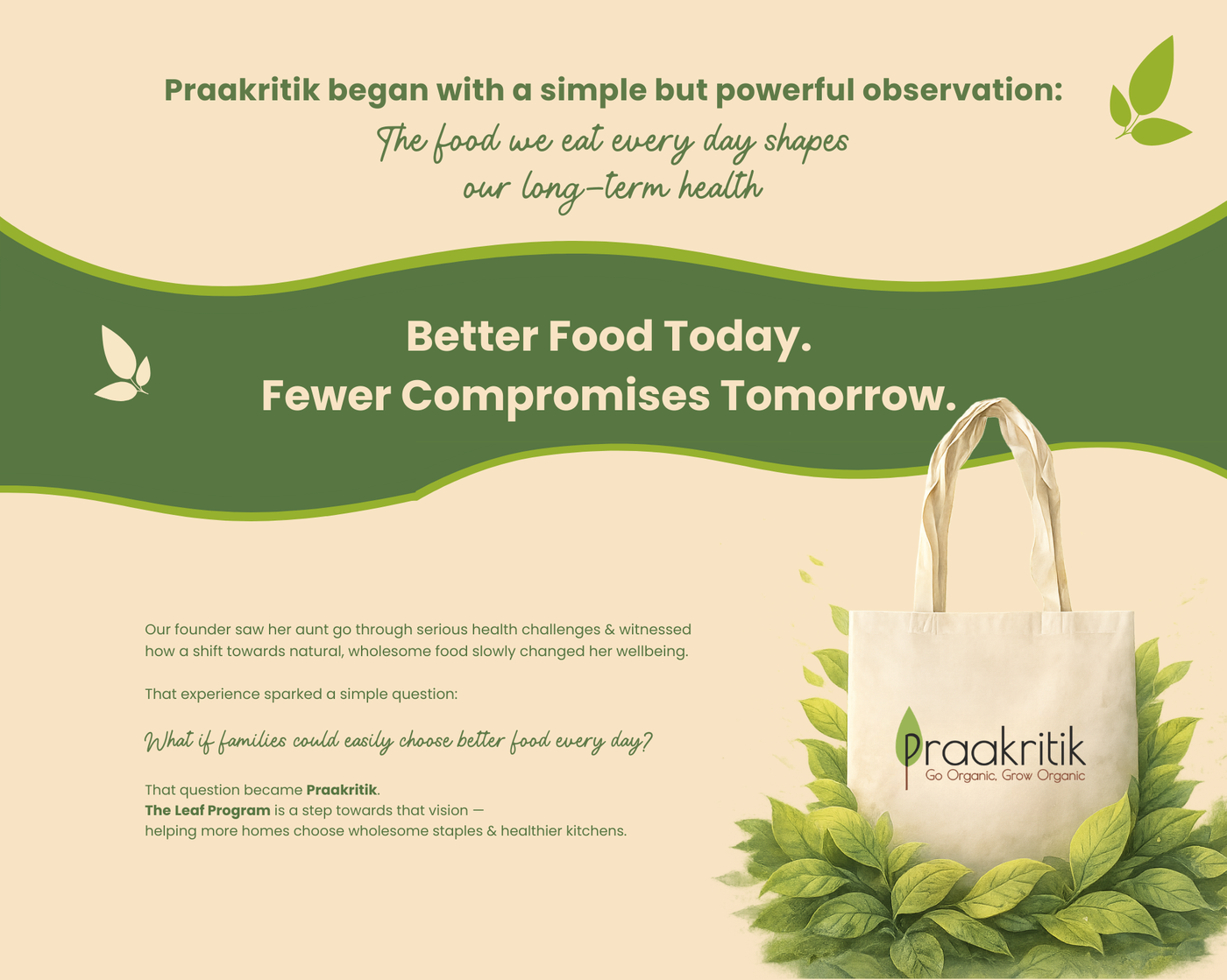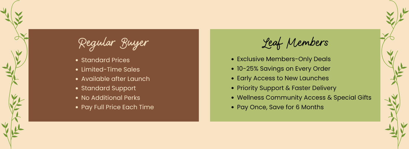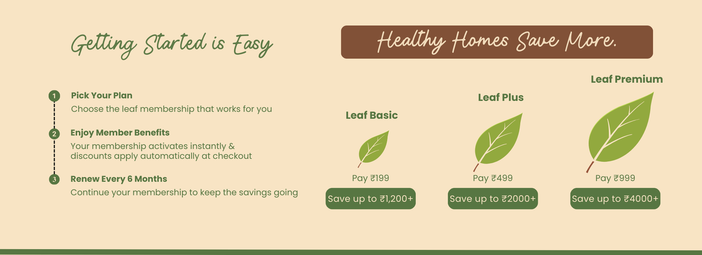 The Leaf Program is a 6-month membership that gives you exclusive savings and member benefits across the entire Praakritik store.